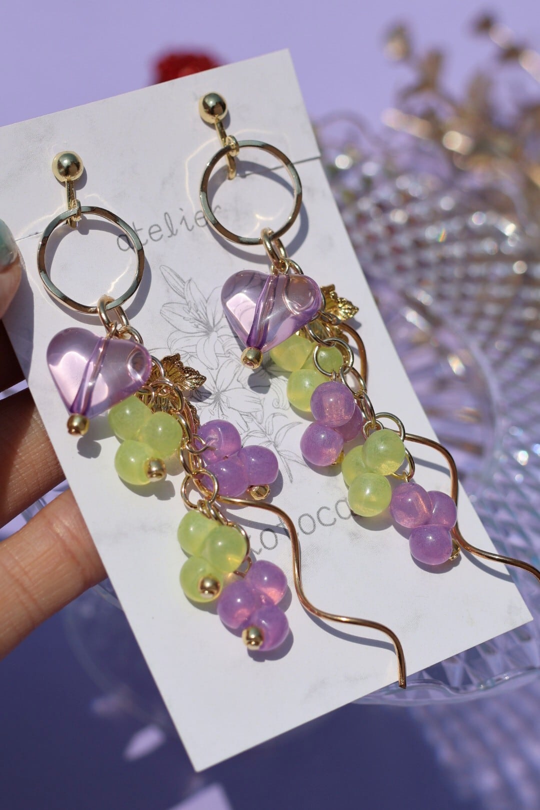 夏が旬のフルーツ"ぶどう"の大人可愛い耳飾りをつくりました❁