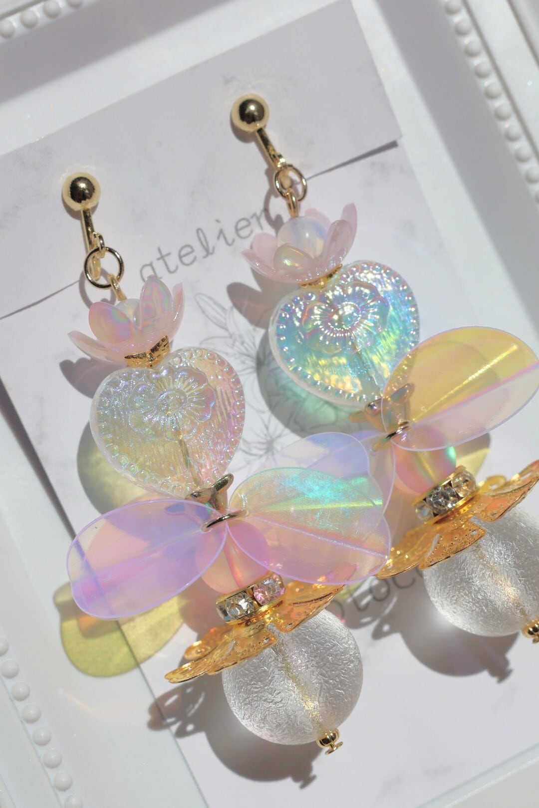 ⚠耳に直接触れる部分の金具は全てサージカルステンレスですがその他パーツは金属製の物を使用しております。