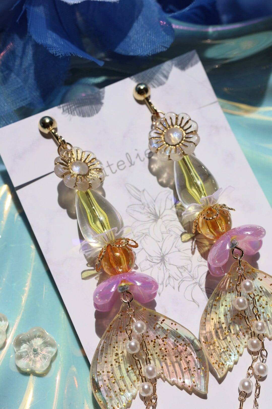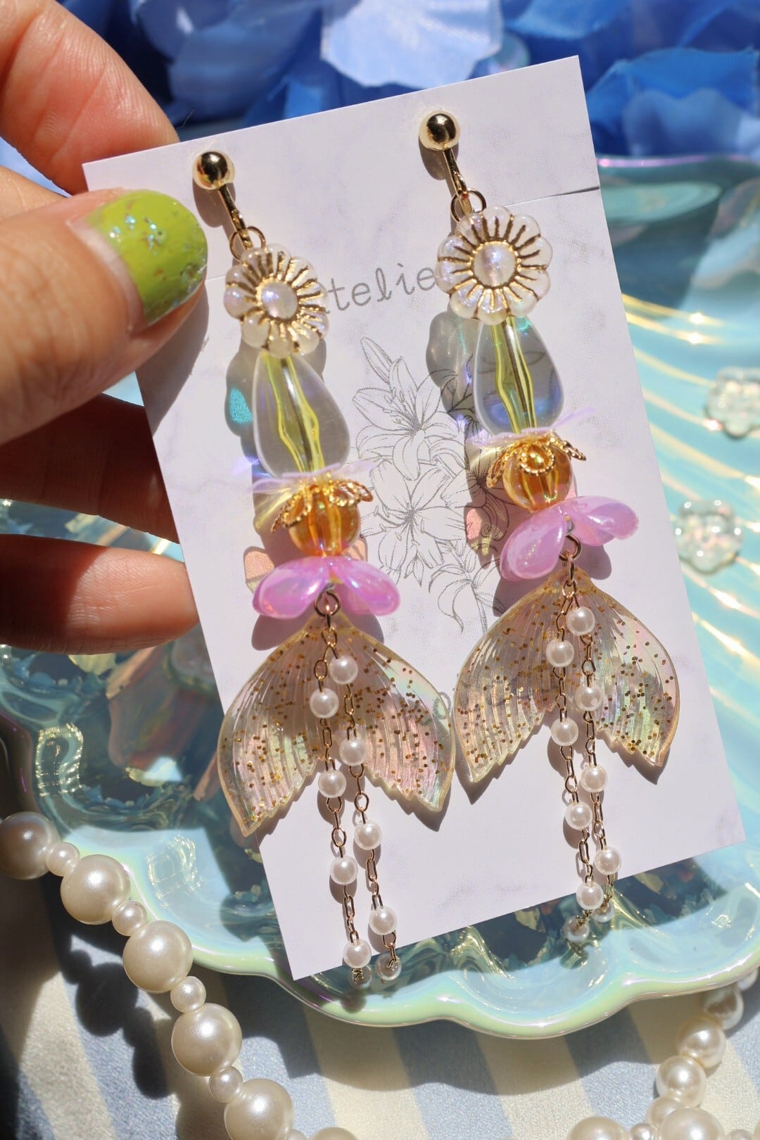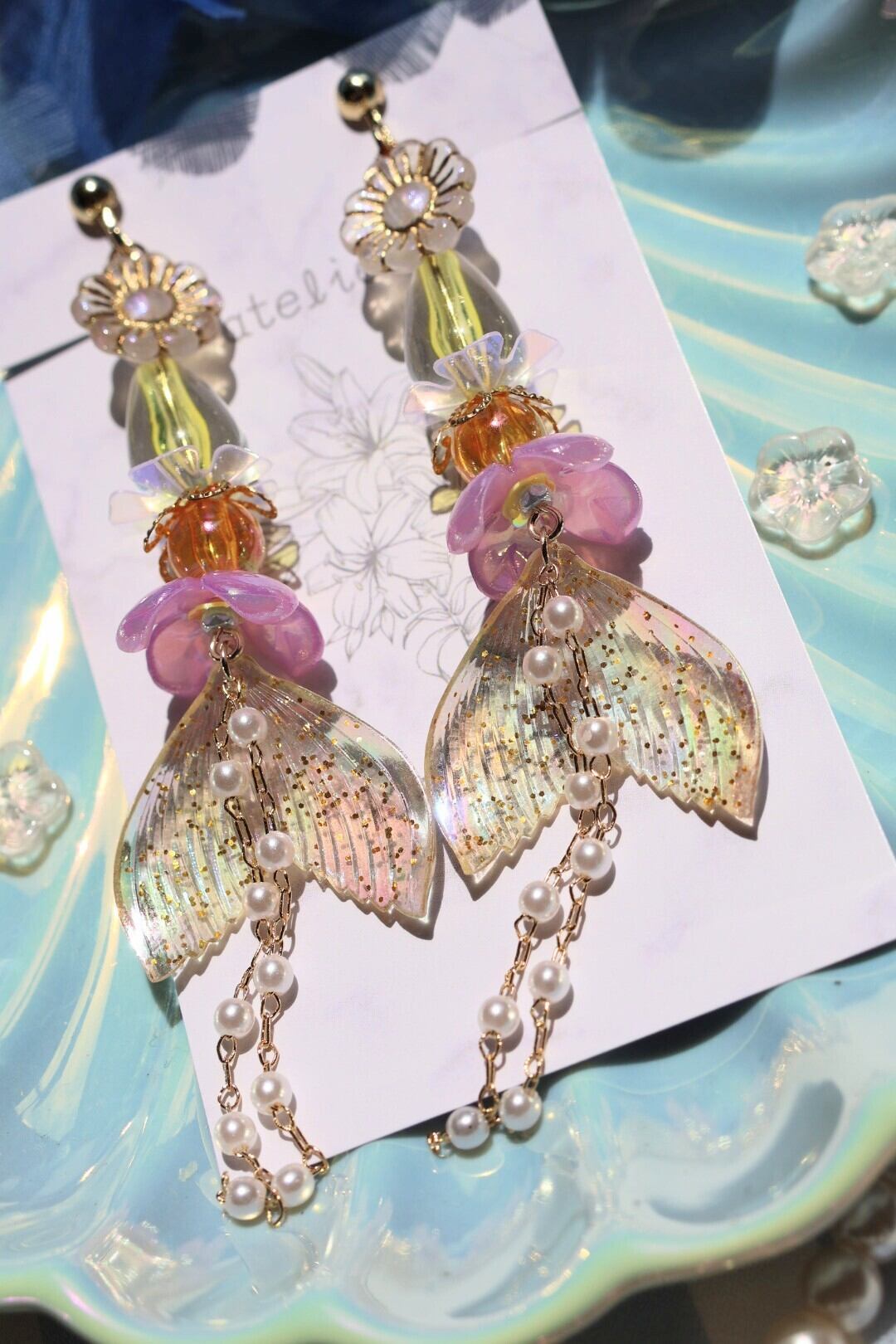 お花のパーツやクリアなビーズ、オーロラのスパンコール、ラメがきらめく尾ひれにパールチェーンetc…♡