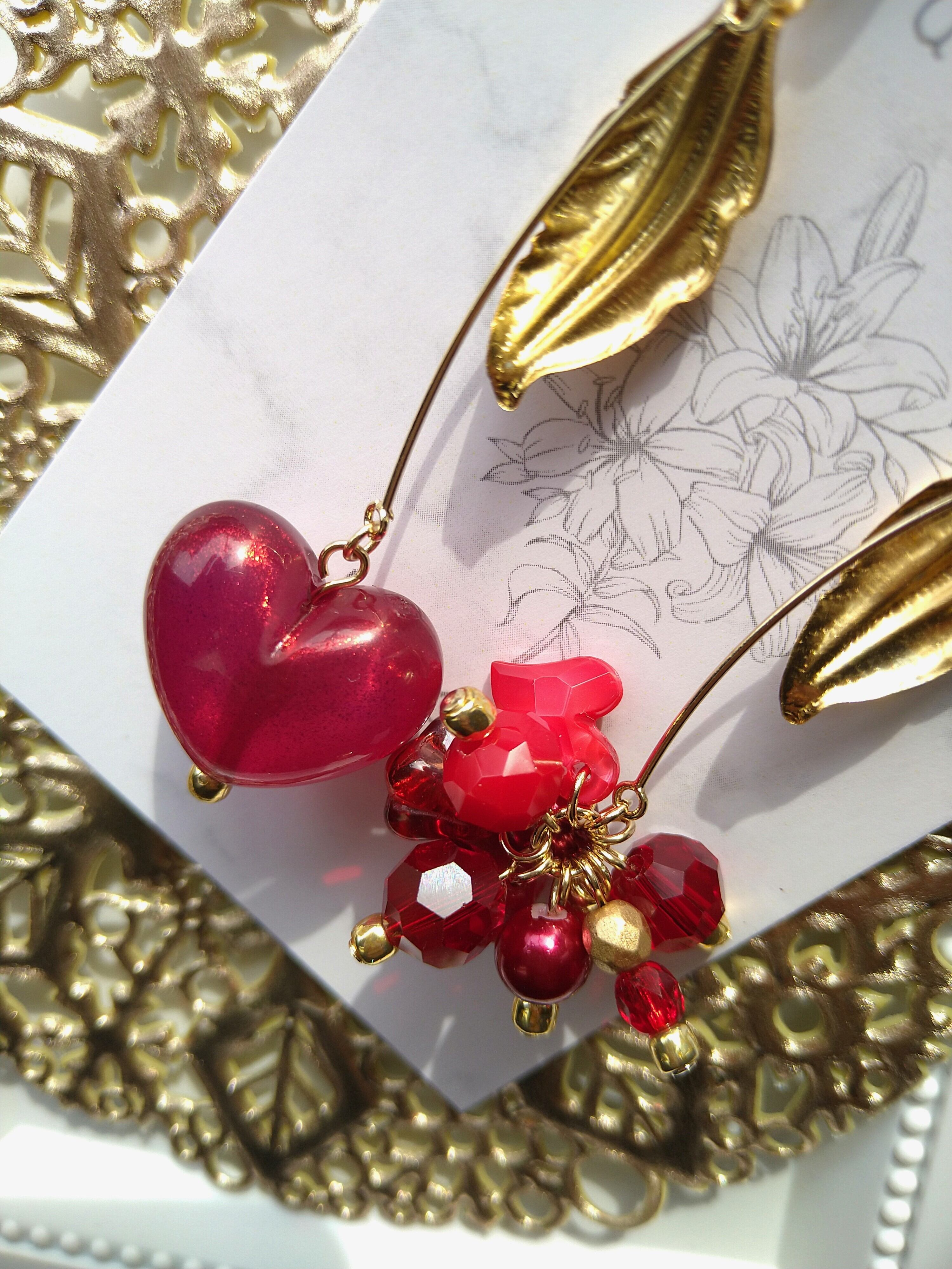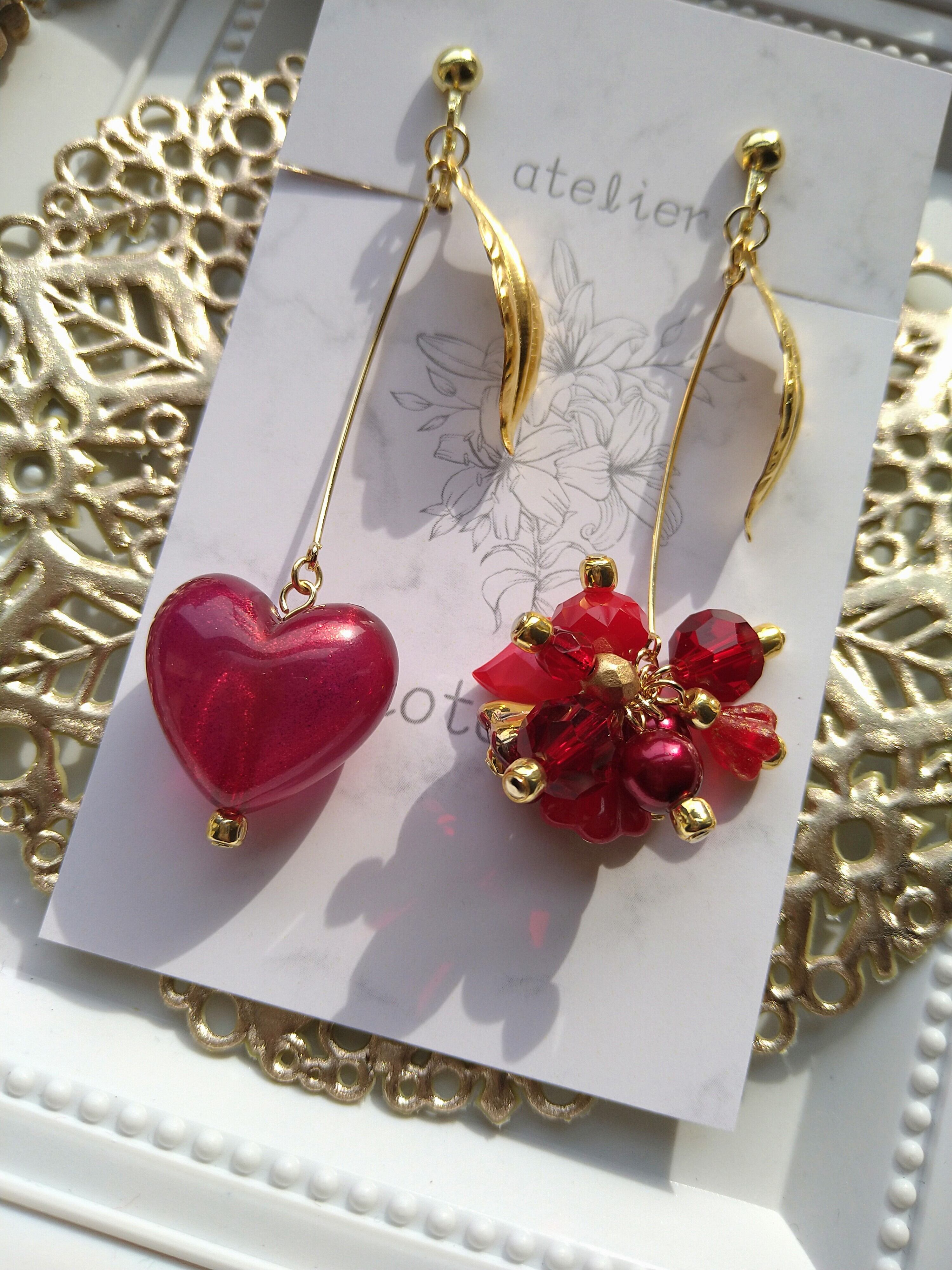 左側、ワインレッドのハートは細かいラメが入っています。