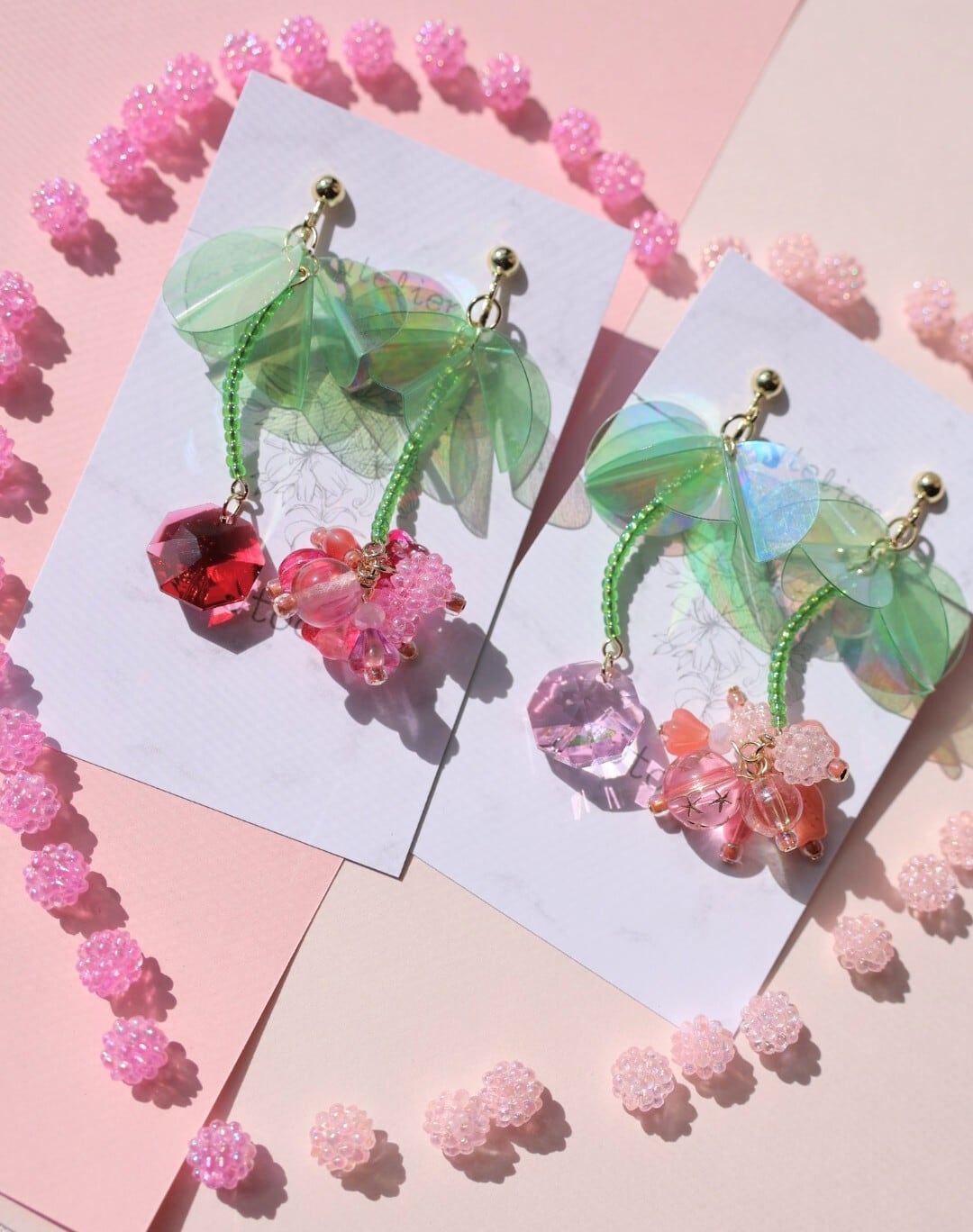 春モード全開のキラキラ可愛い華やかな耳飾りに仕上がっています❀