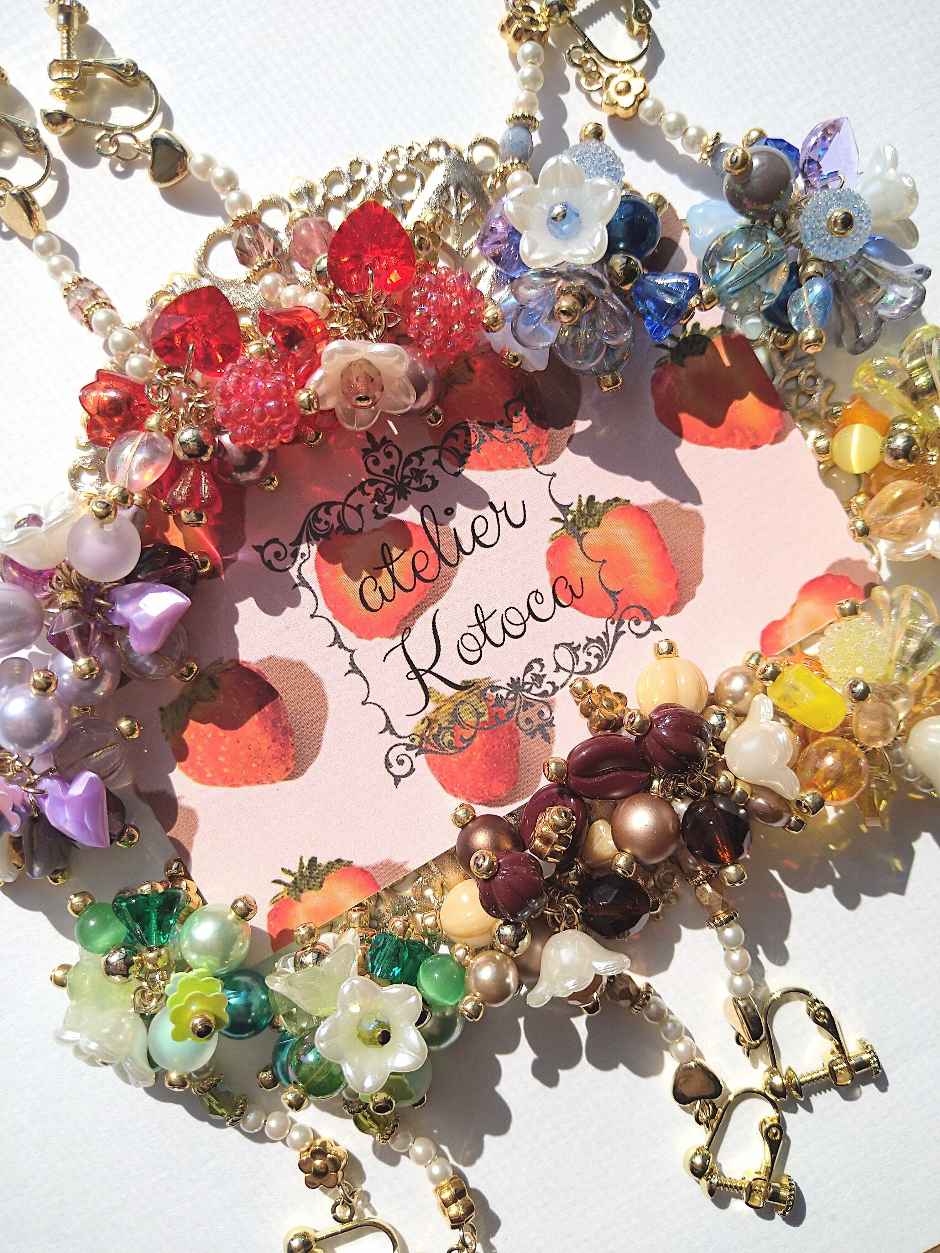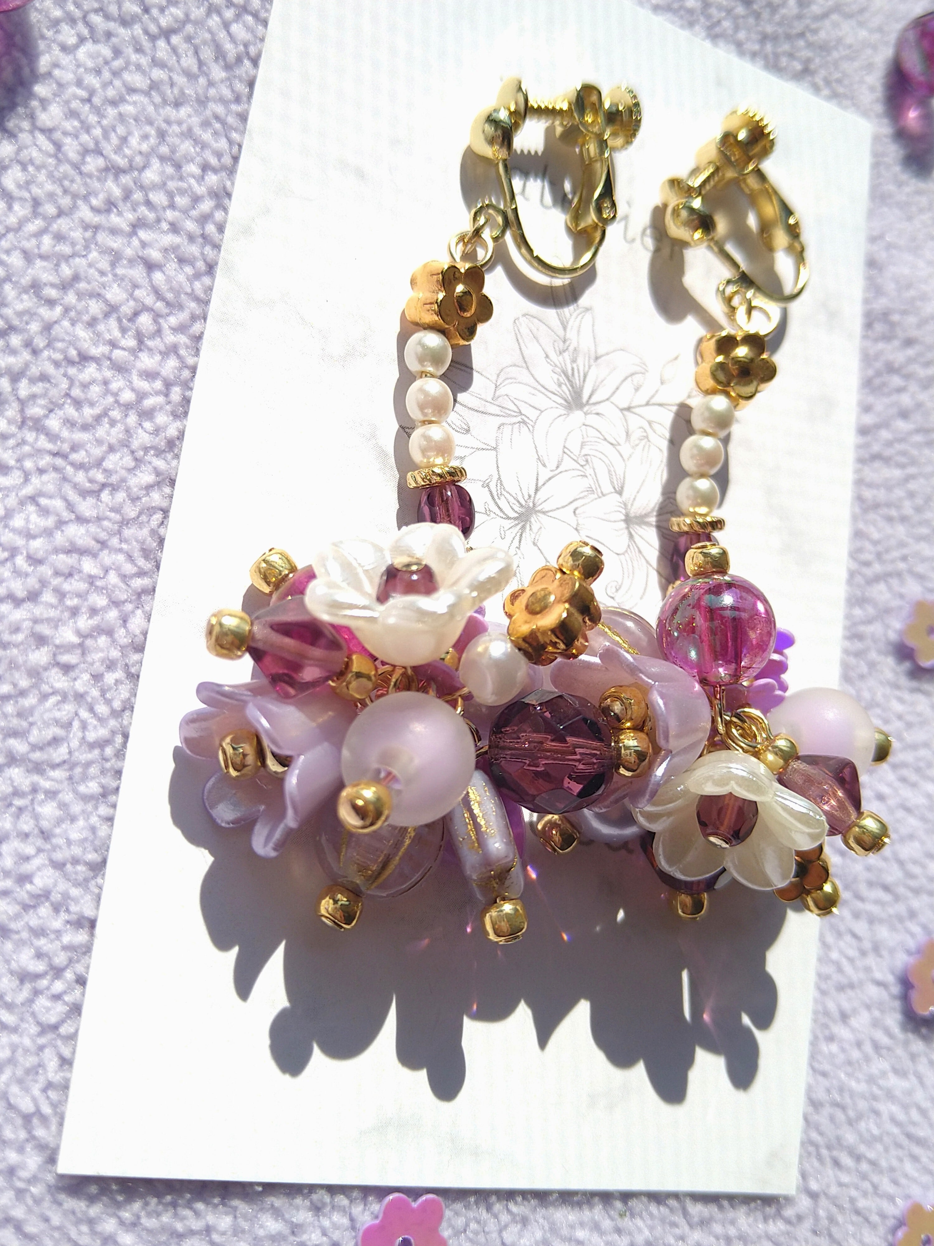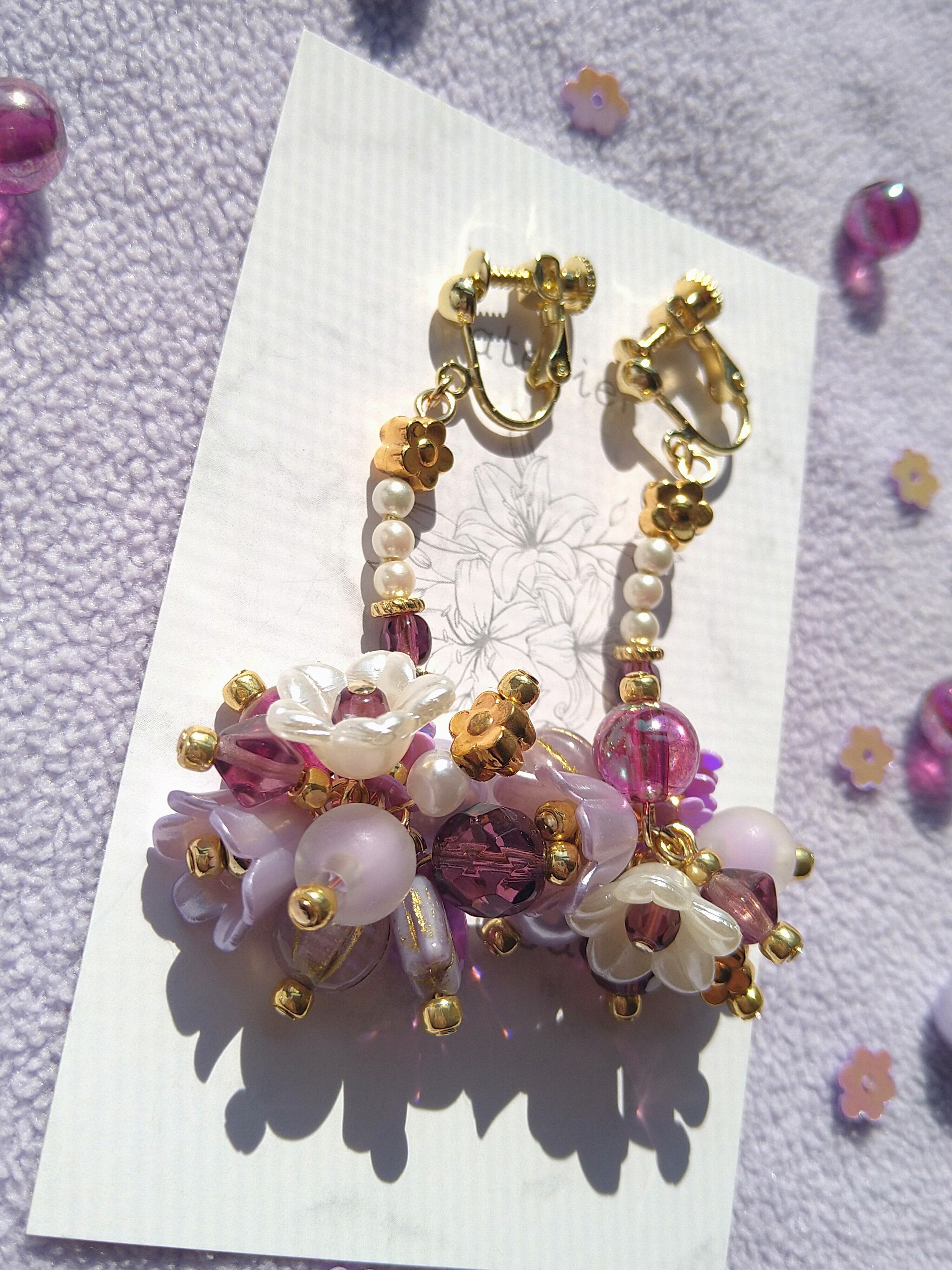 こちゃこちゃとたくさん飾り付けた華やかな耳飾りです❀