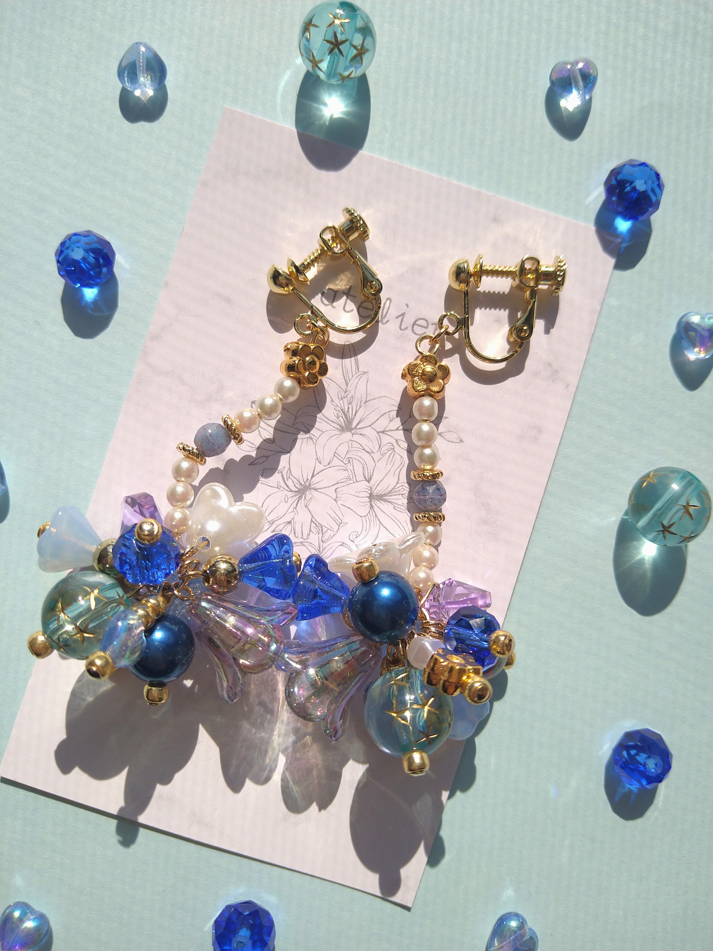 こちゃこちゃとたくさん飾り付けた華やかな耳飾りです❀