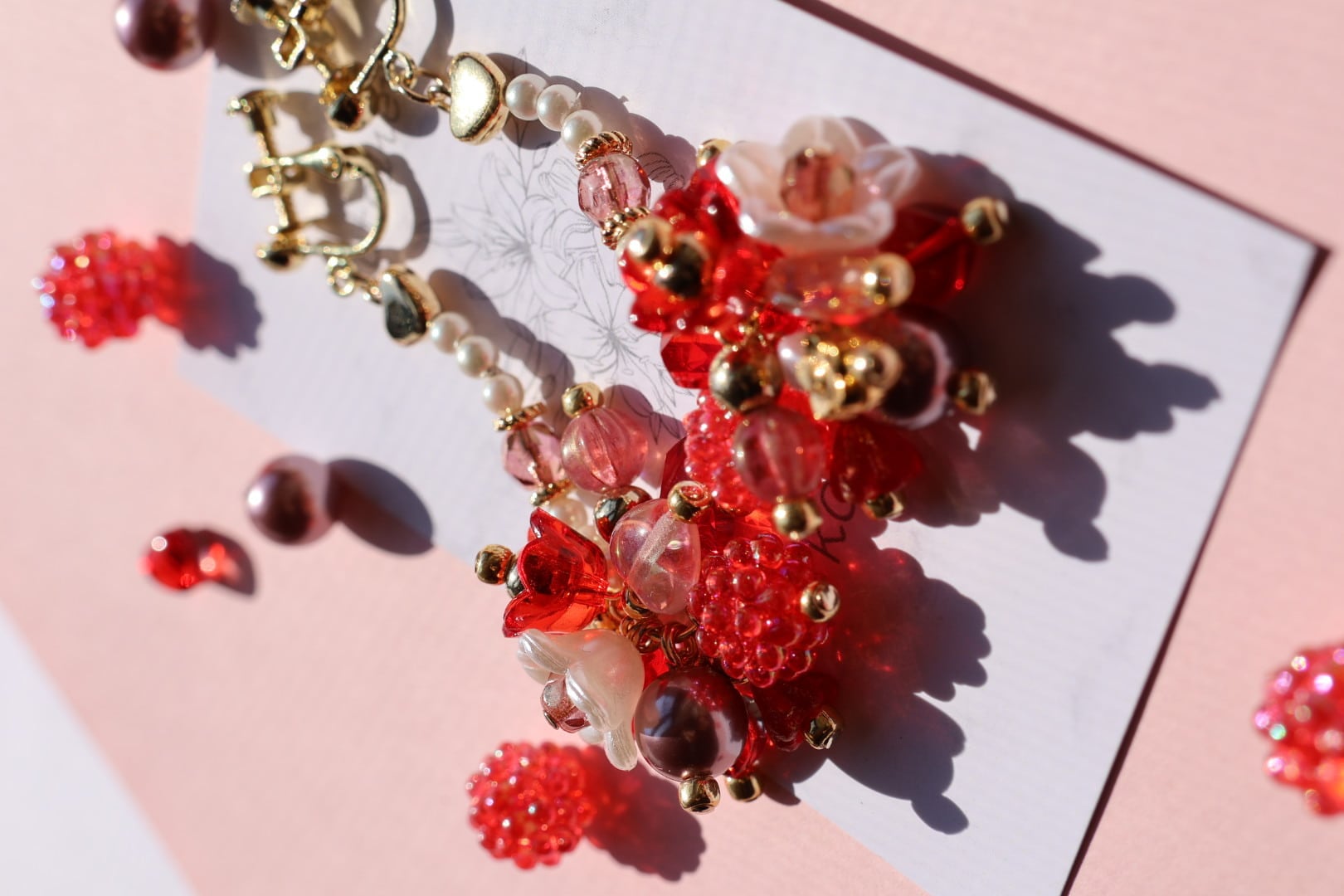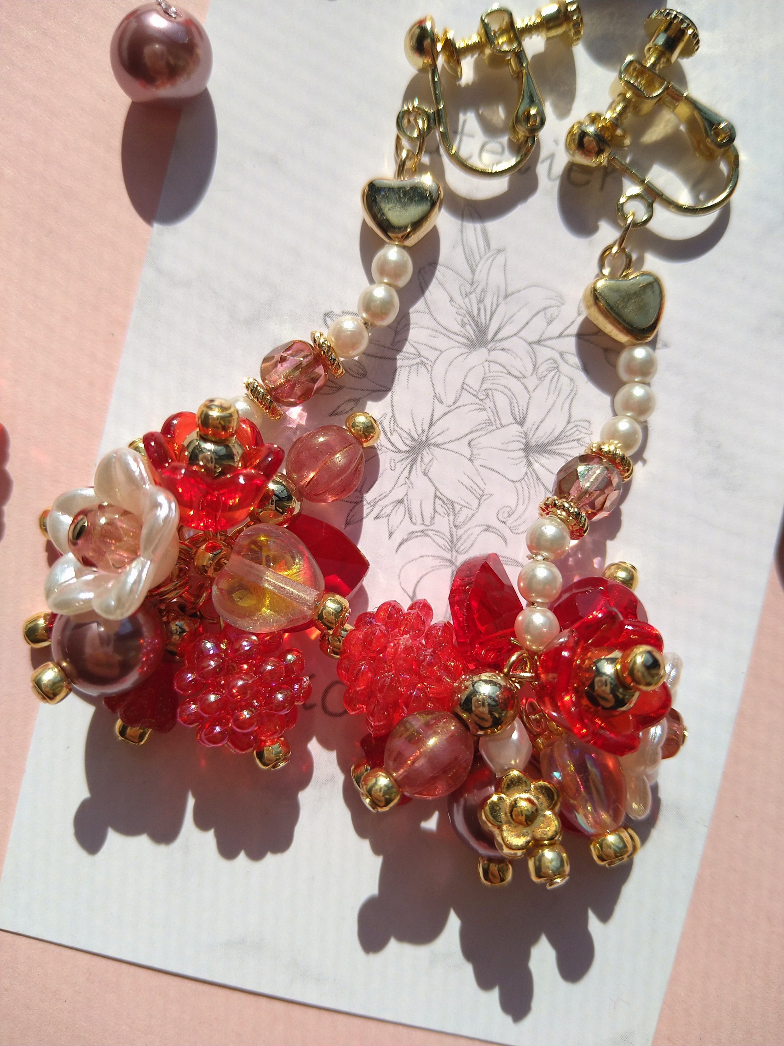 こちゃこちゃとたくさん飾り付けた春を感じる華やかな耳飾りです❀