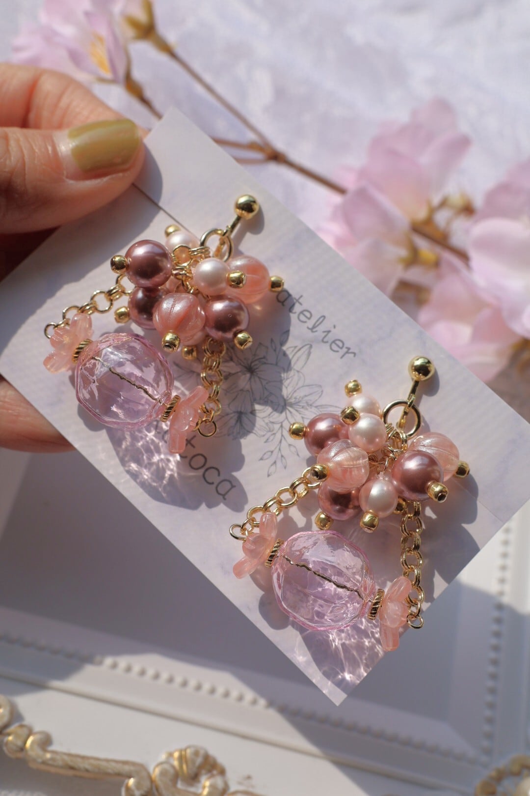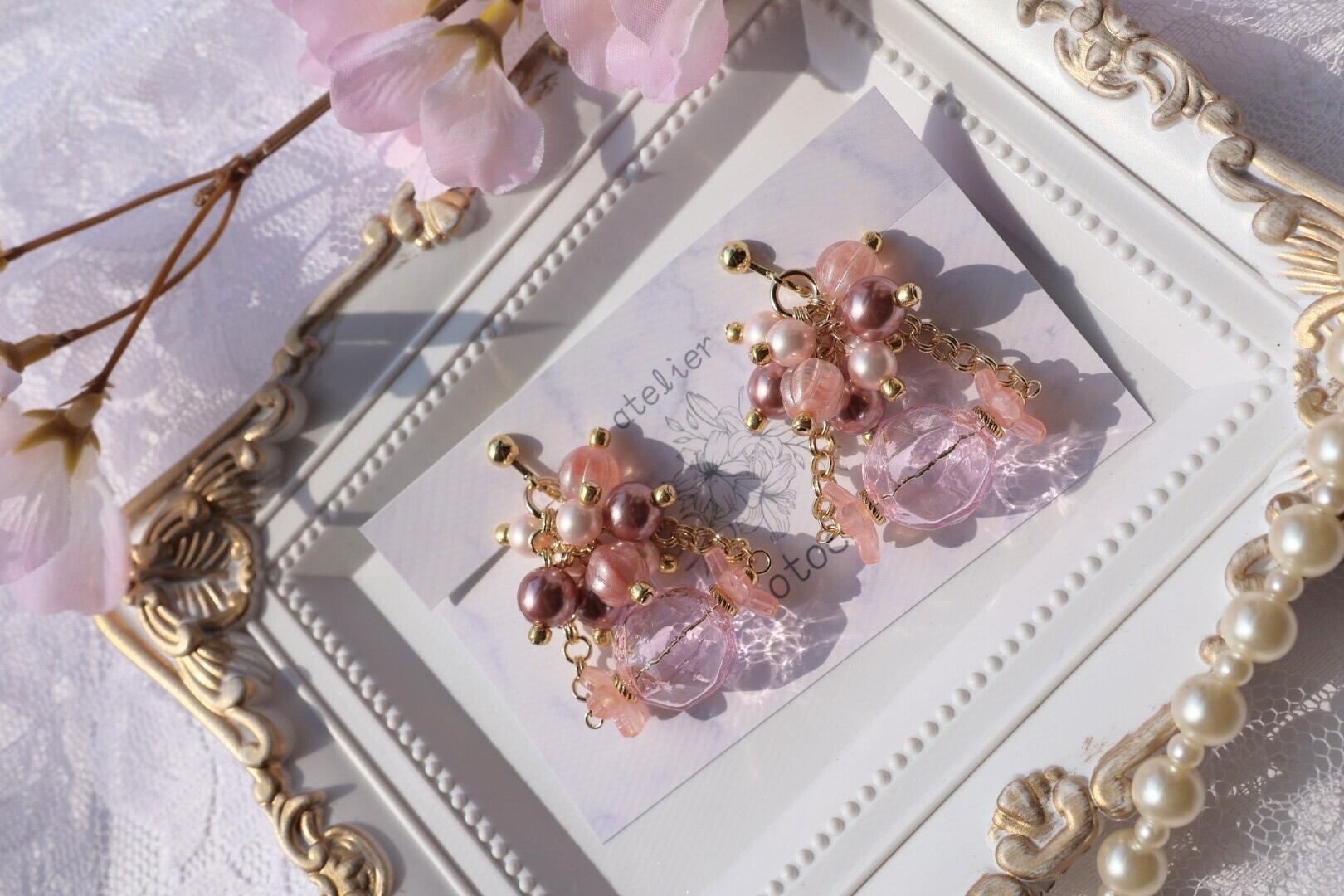 春らしい桜モチーフの耳飾りが出来ました❀