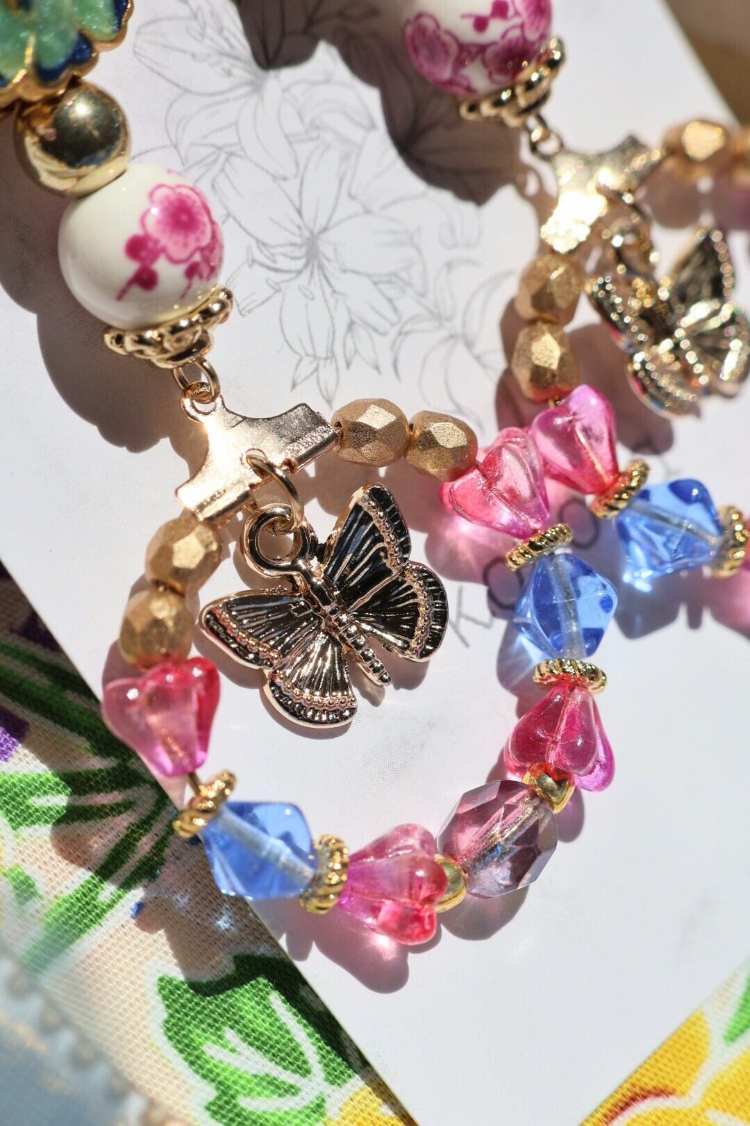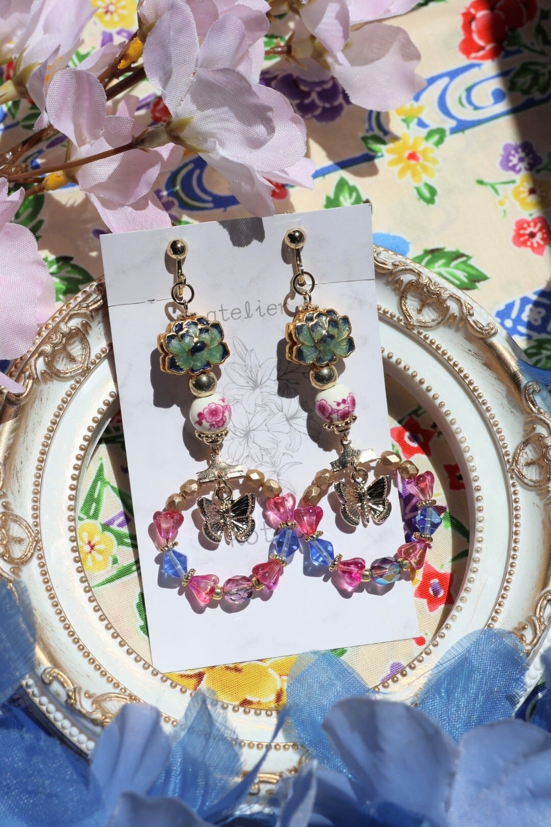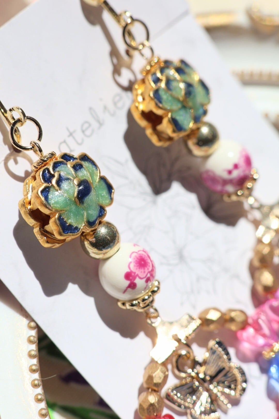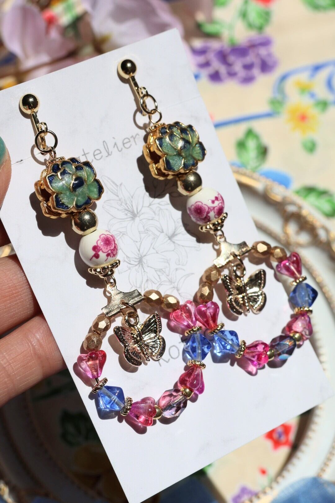 蓮の花、陶器ビーズ、蝶のチャーム等チャイナな雰囲気もあり個性的な仕上がりになっています♡