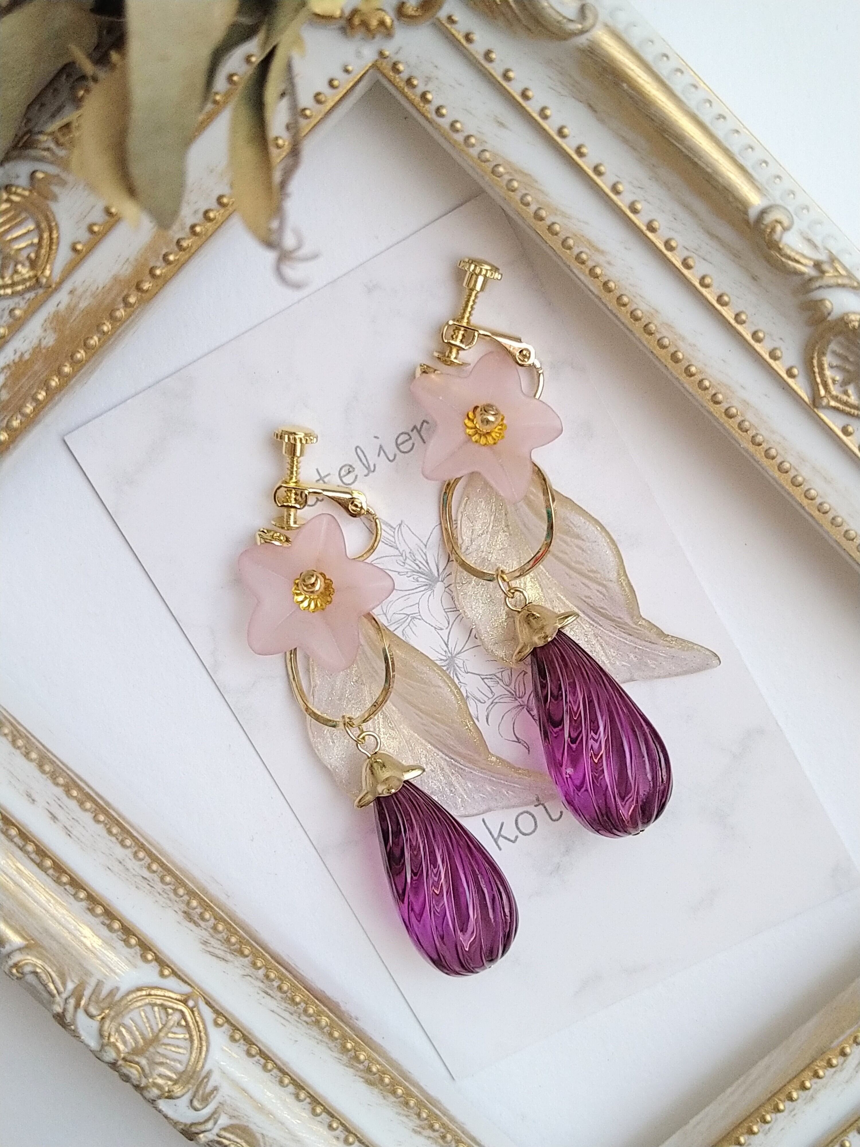 茄子をイメージしたミニチュア耳飾りを作りました。