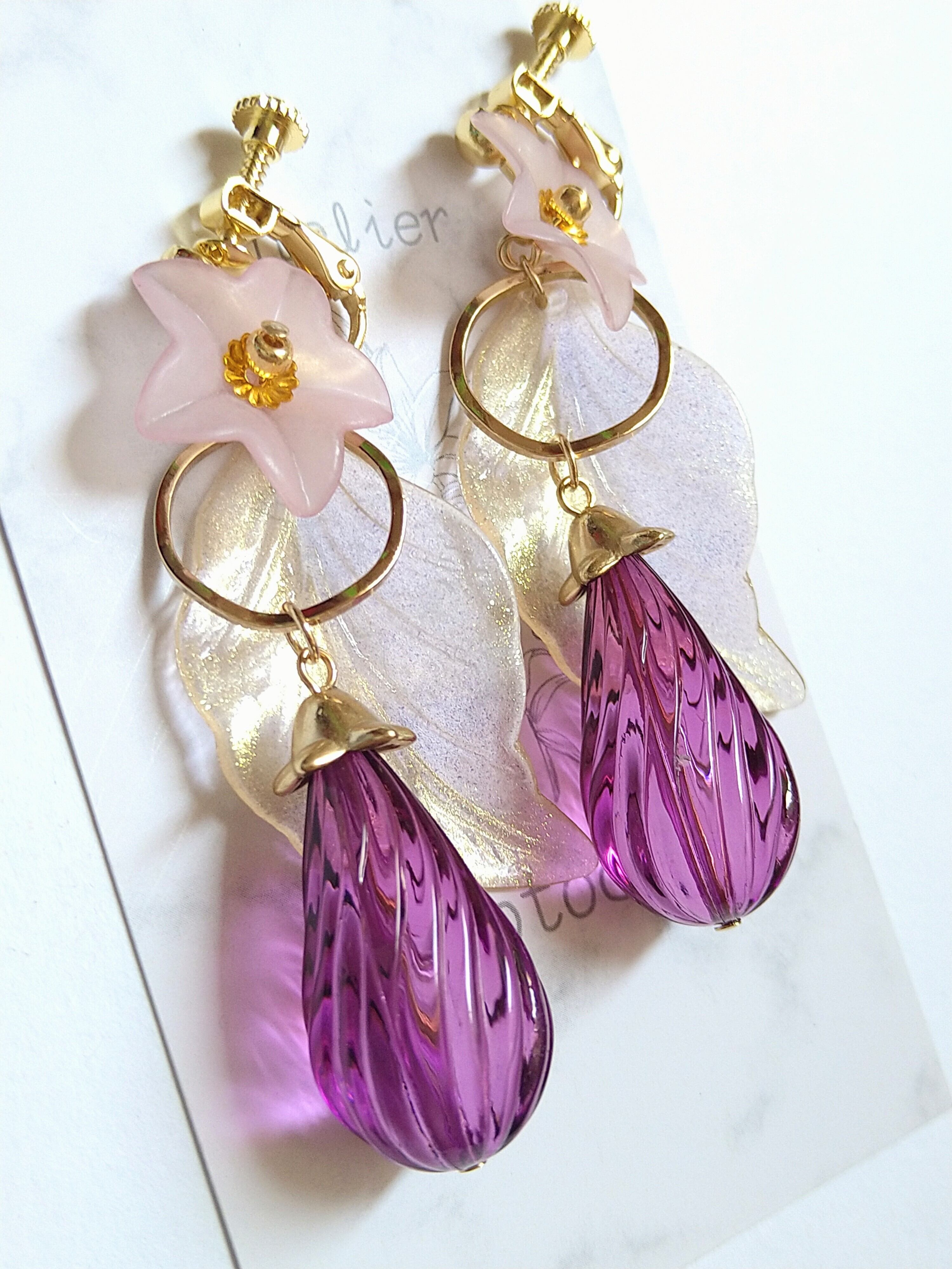 ⚠耳に直接触れる部分の金具は全てサージカルステンレスですがその他パーツは金属製の物を使用しております。