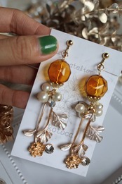 オレンジイエローのガラスボールとアンティーク風のマリーゴールドチャームが可愛らしい耳飾りです❁