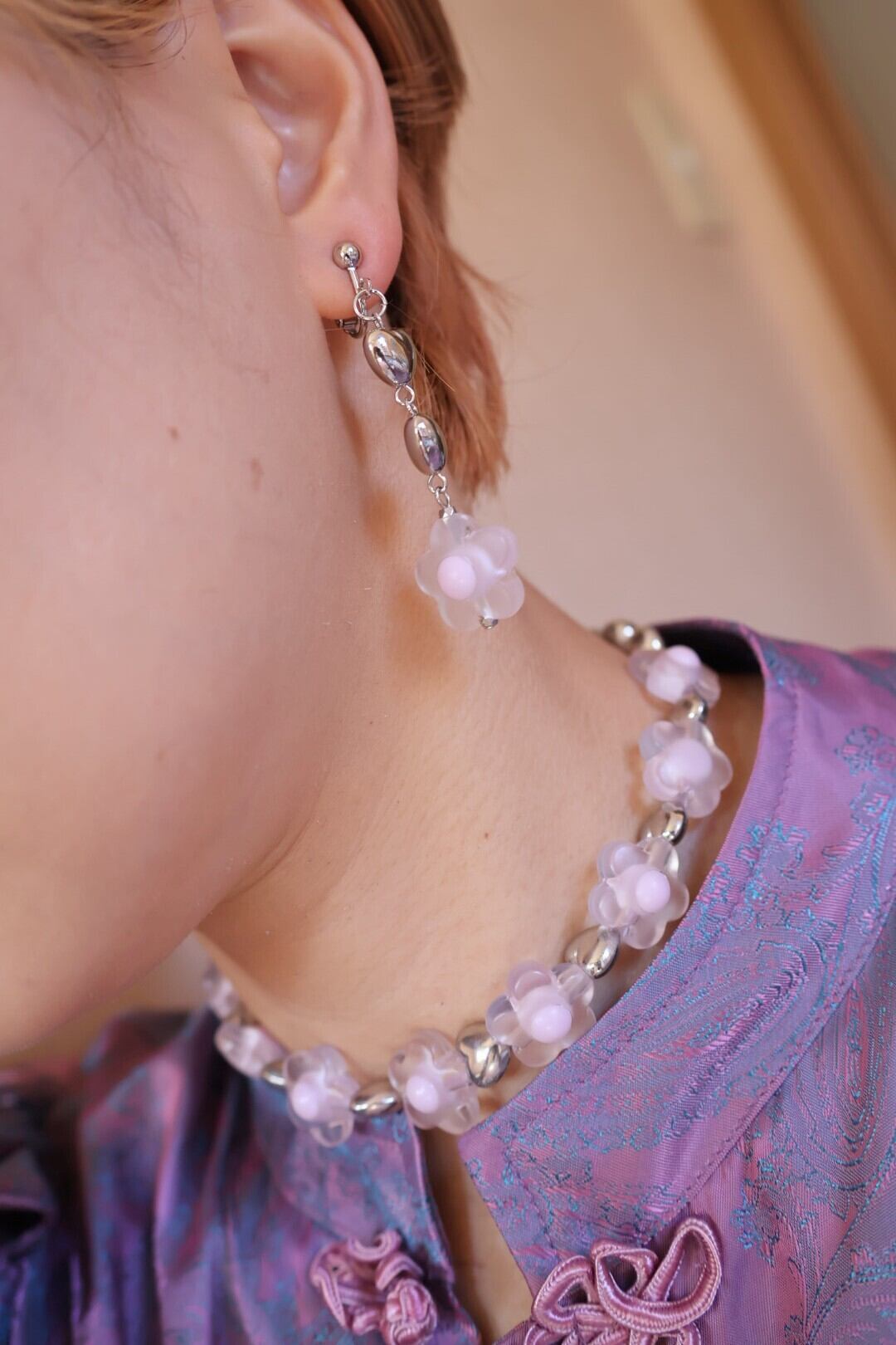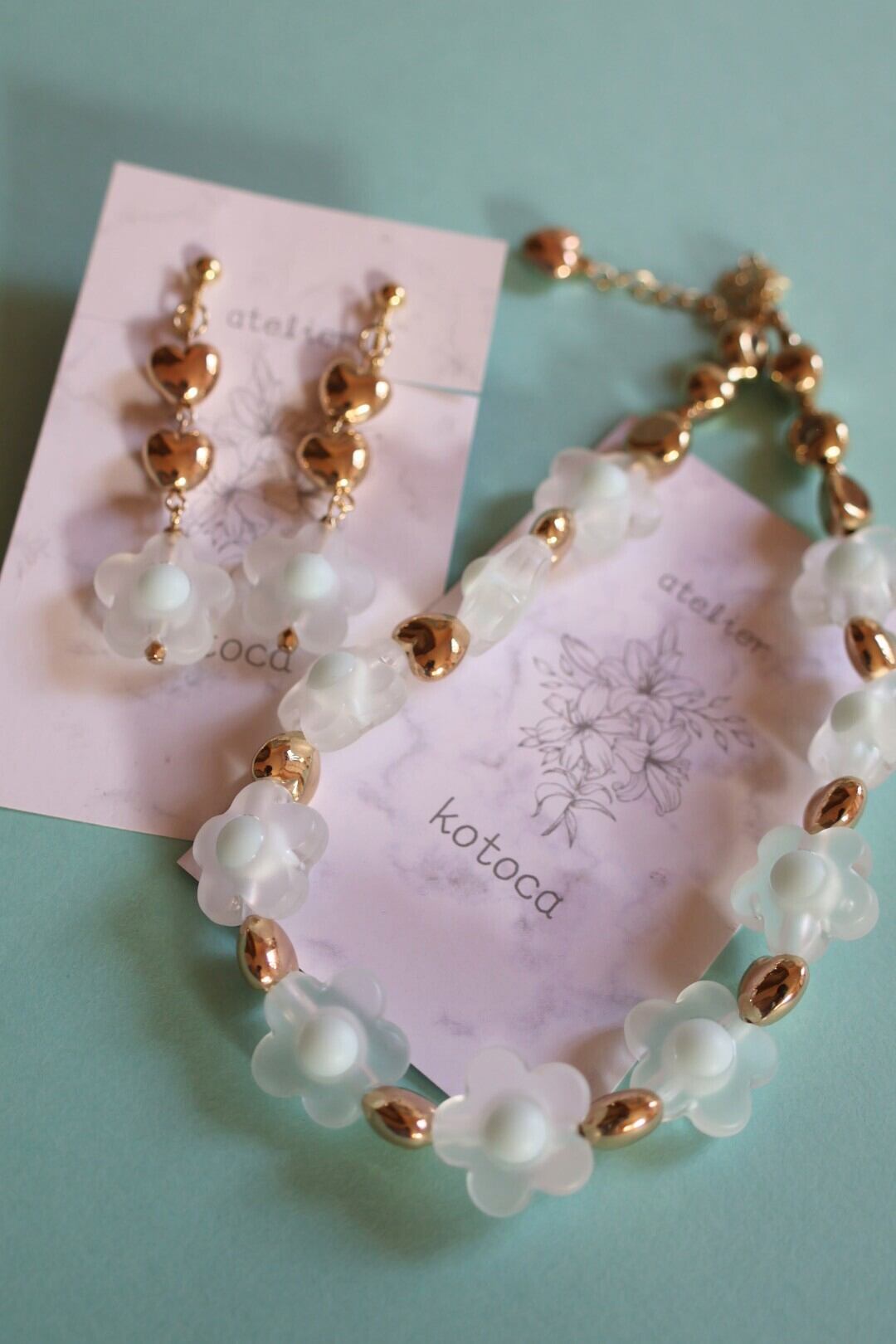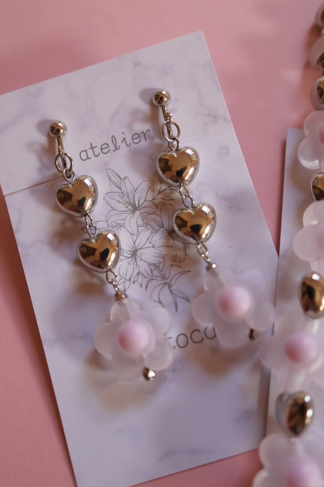ふんわりマットなお花の可愛らしさとメタルなハートビーズを合わせて格好可愛く仕上げました❁