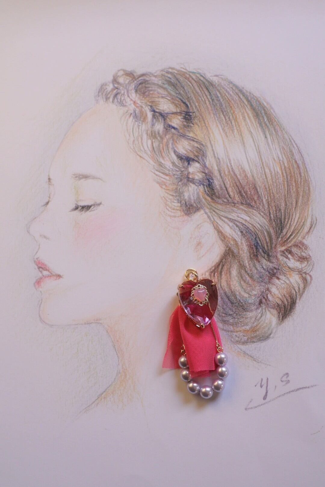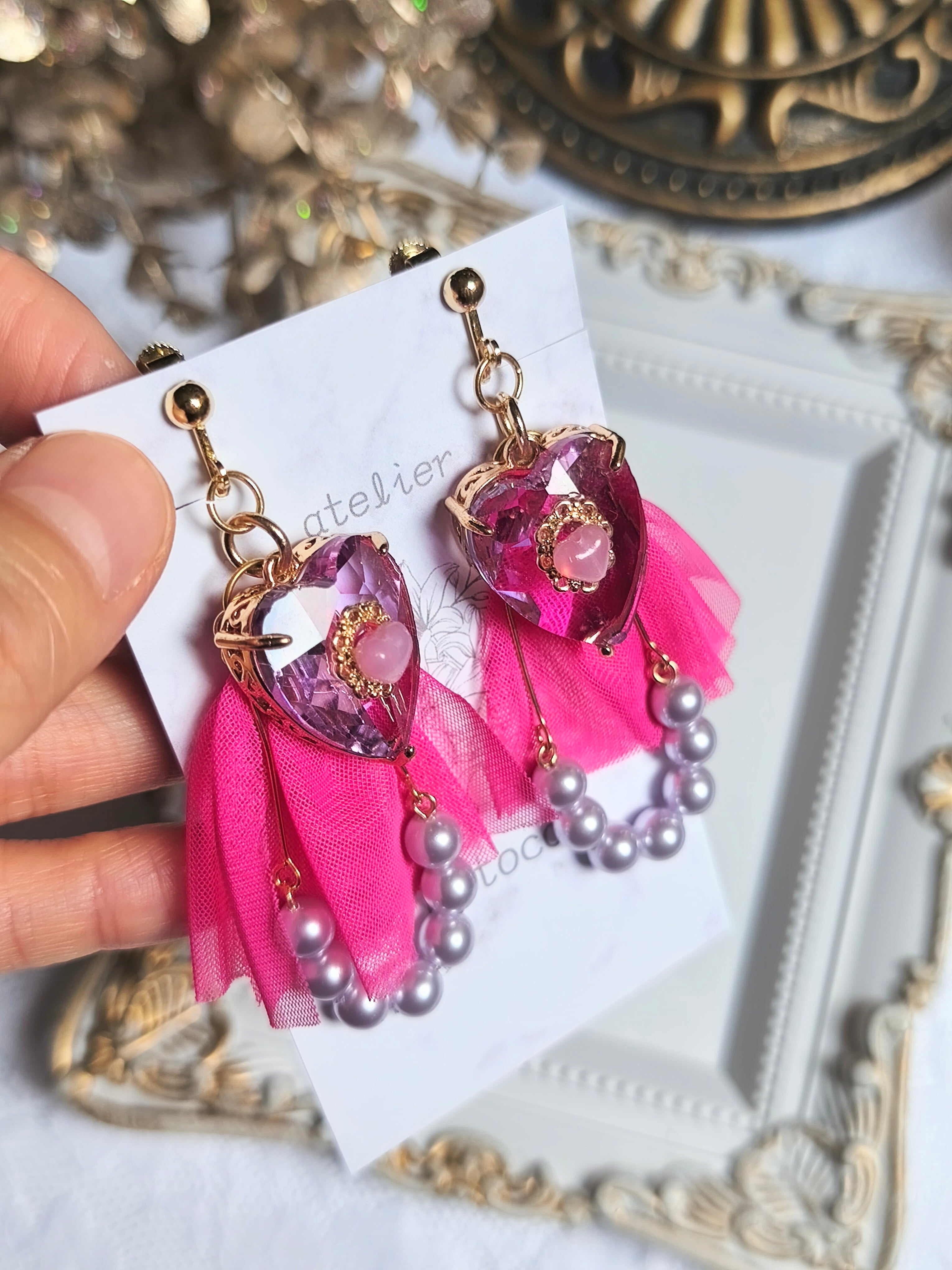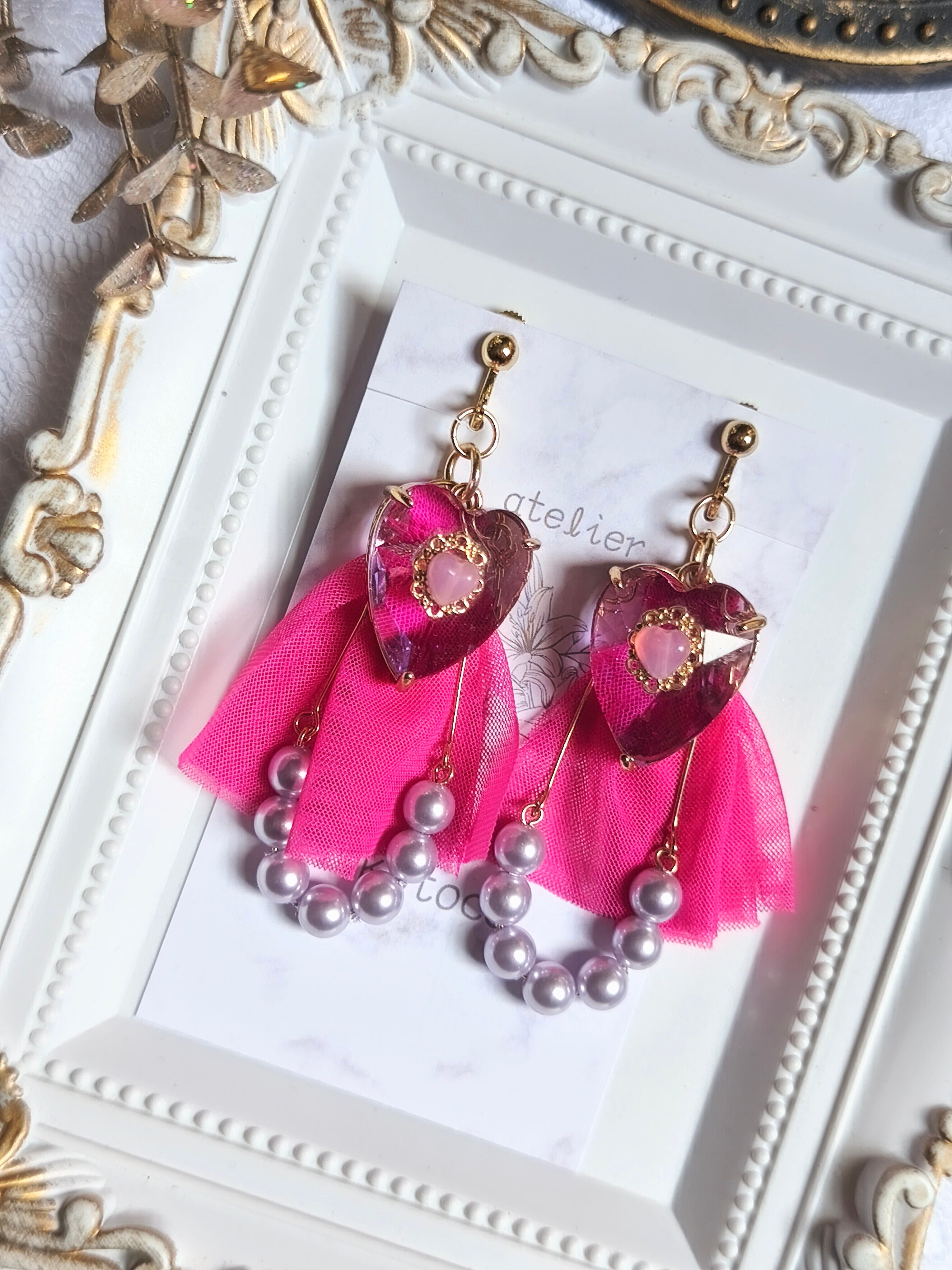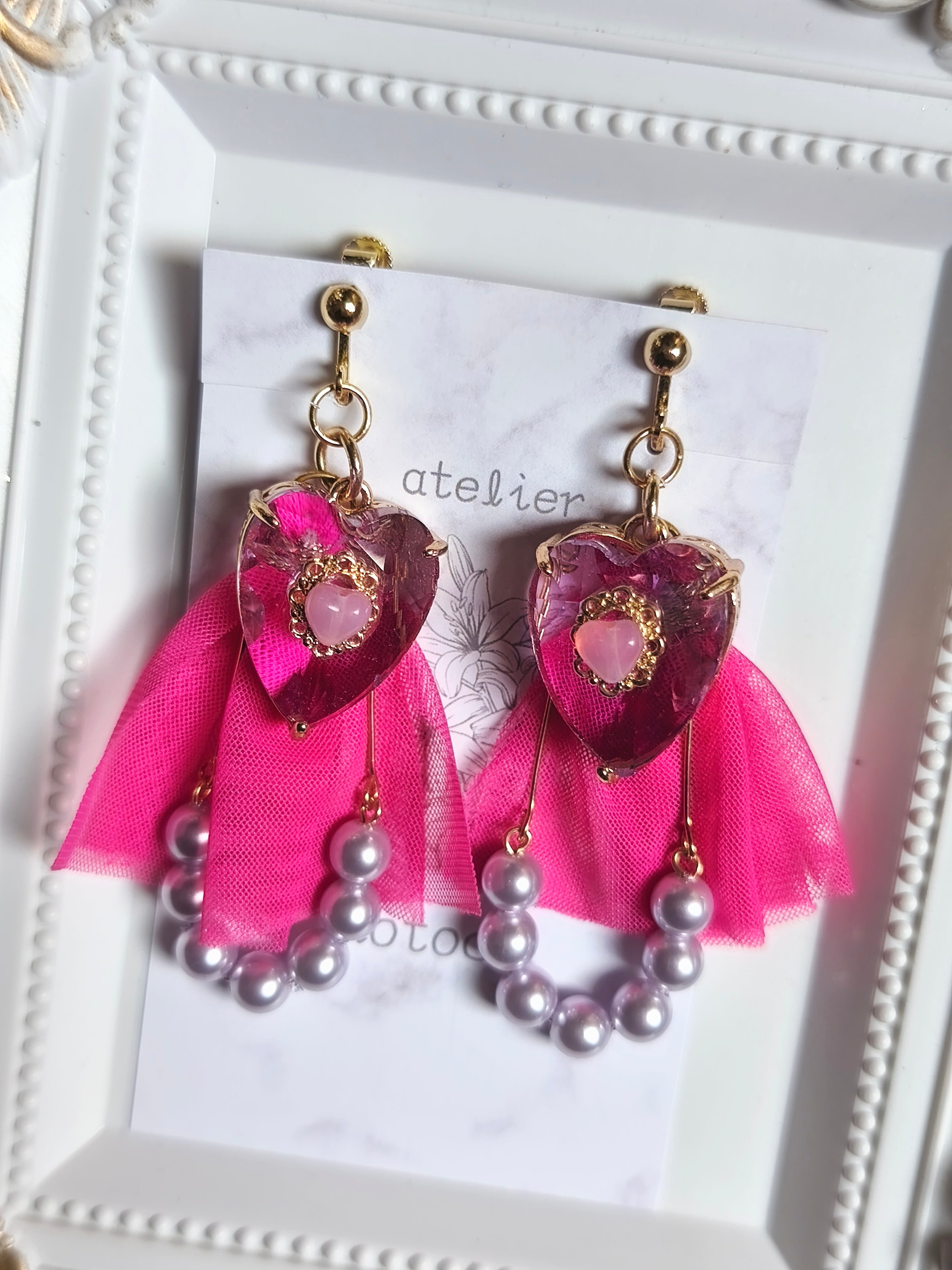 大きめのガラスのハートに小さなハートを重ねて、チュールはまるでスカートの様に…❦