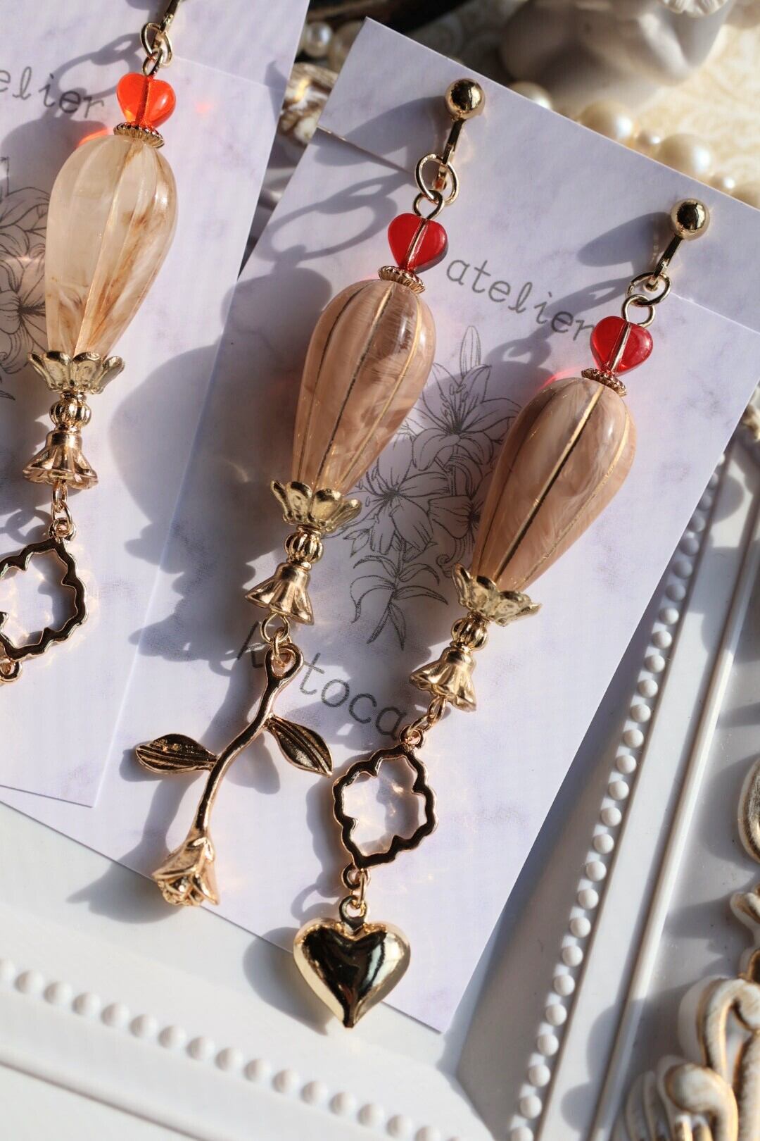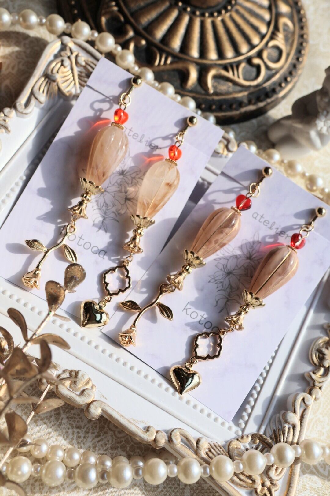 ⚠耳に直接触れる部分の金具は全てサージカルステンレスですがその他パーツは金属製の物を使用しております。
