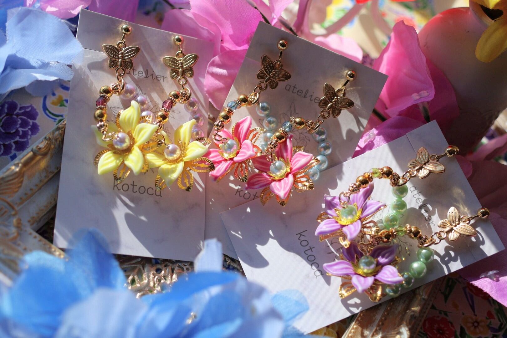 ⚠耳に直接触れる部分の金具は全てサージカルステンレスですがその他パーツは金属製の物を使用しております。