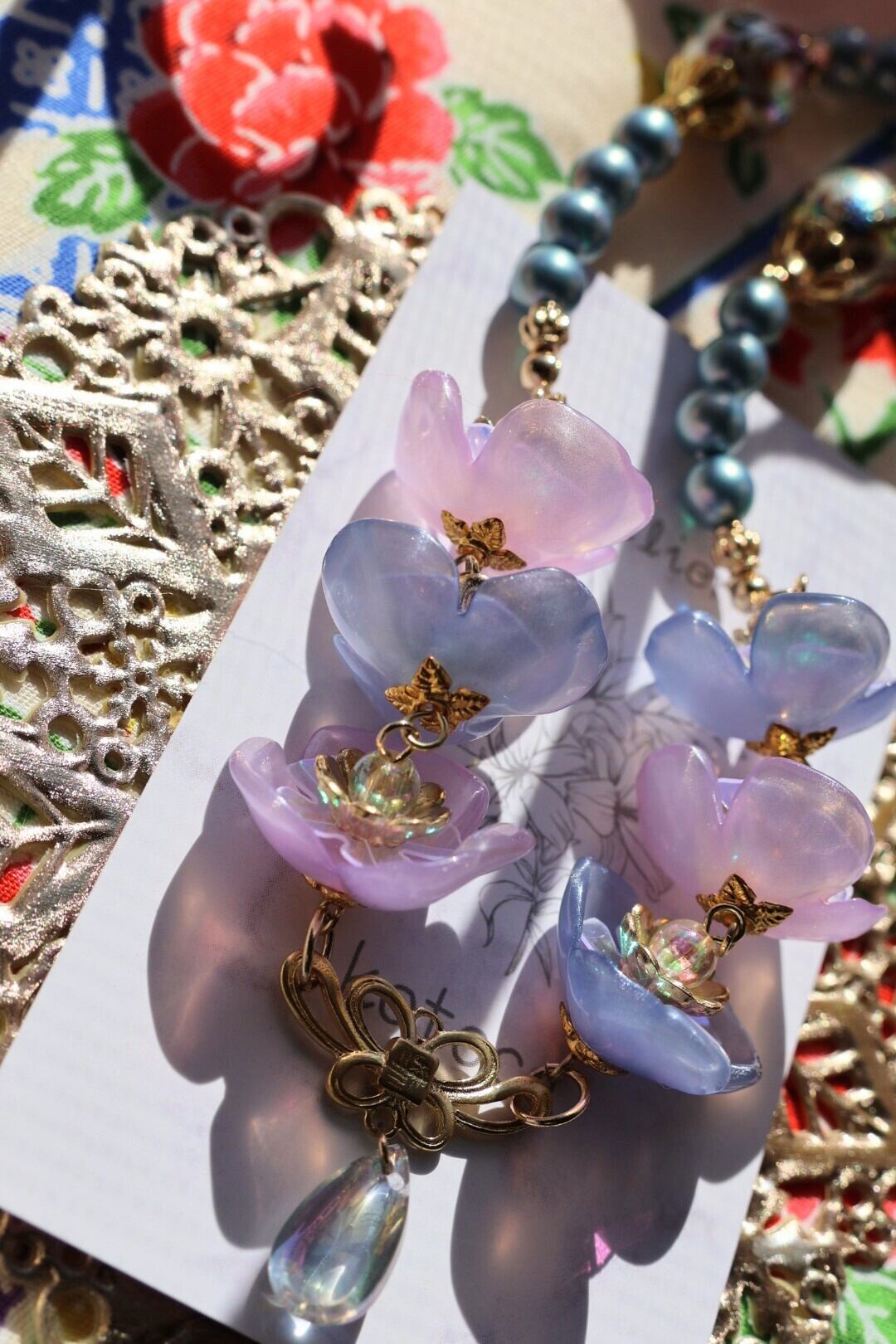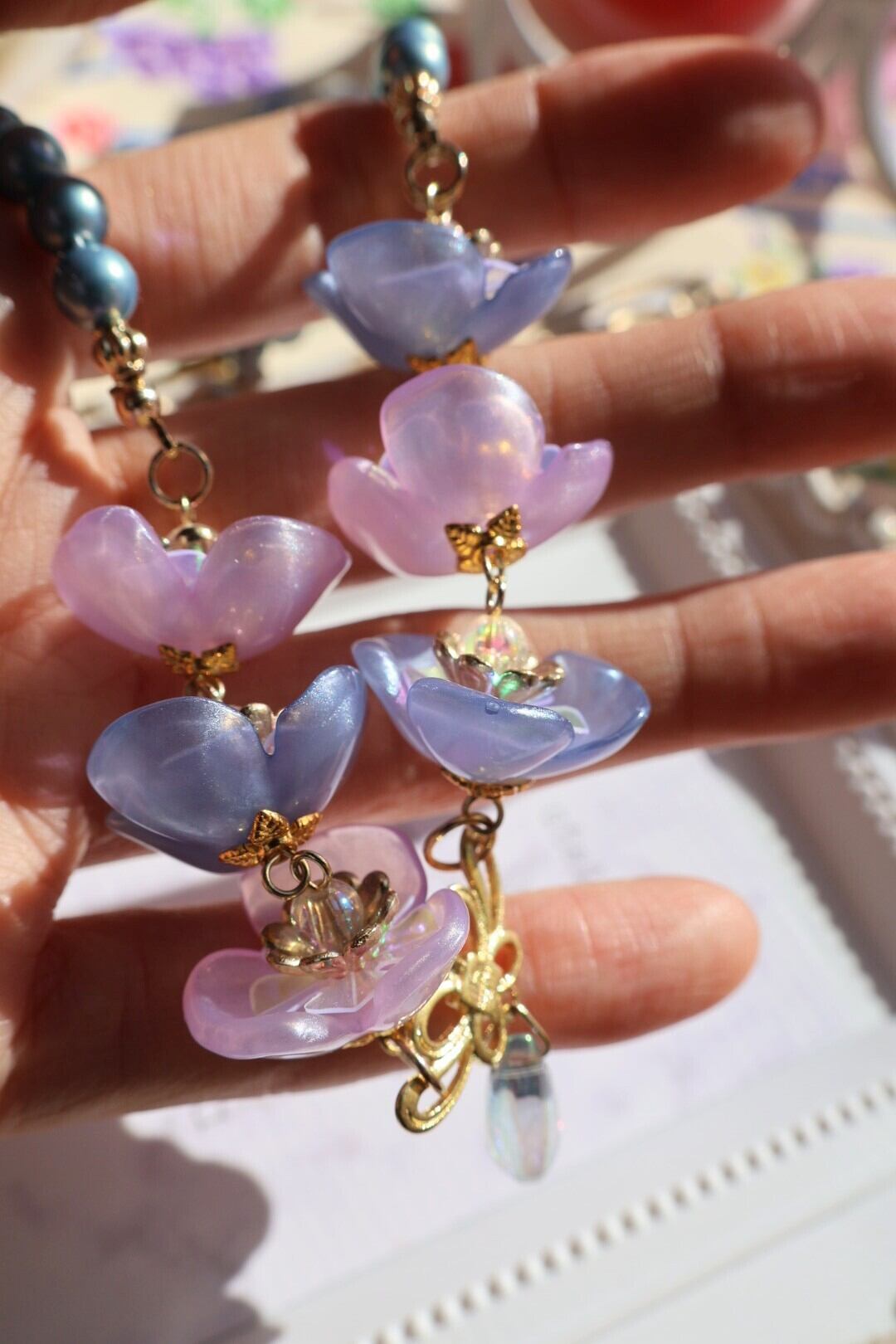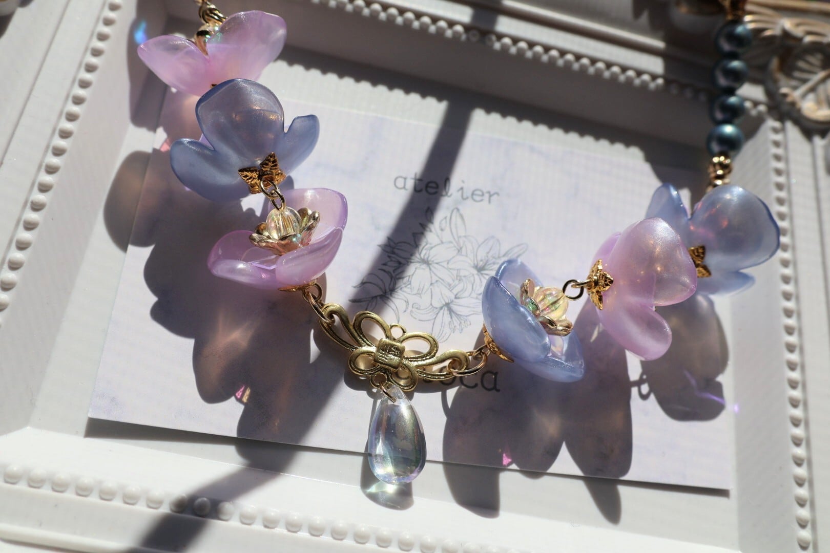 『朝露の首飾り』は立体的なお花が神秘的な雰囲気を醸し出す首飾りです。